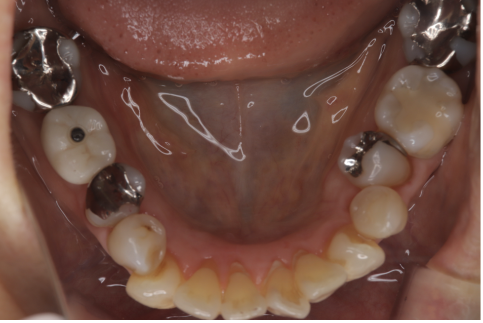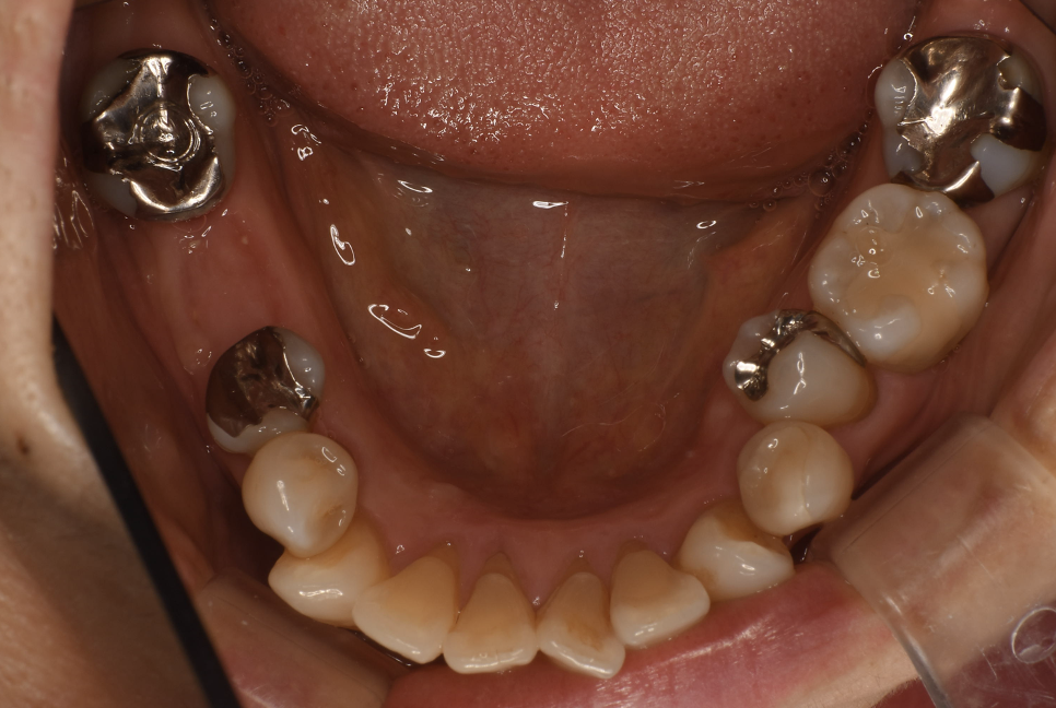 | 備考 | 院長より 残念ながら保存できなかった銀歯を抜歯して、インプラントを埋入しました。インプラント(人工歯根)と被せ(フルジルコニアCr)はネジで連結してあり必要に応じて外してチェックできるようになっています。写真ではメンテナンス時でネジ穴が見える状態になっています。 通常はネジ穴はプラスティックで蓋をして見えない状態になっています。 |