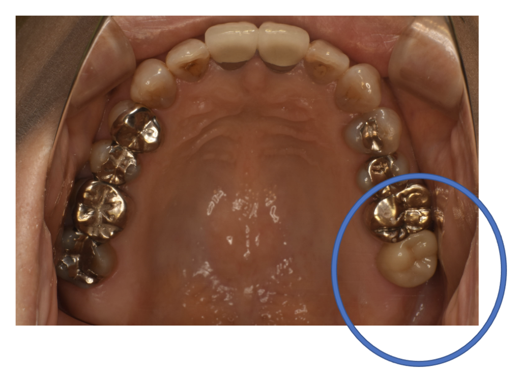 | 備考 | 院長より 親知らずが原因で、親知らずの一個手前の歯に磨けない場所ができてしまい、残念ながら神経まで達する重度の虫歯になってしまいました。 フルジルコニアCrで被せて機能を回復しています。一番奥の親知らずが存在していては、手入れが難しく、再び手前の歯に虫歯、歯周病のリスクを高める存在になっていたので、相談の上、抜歯することになりました。 |