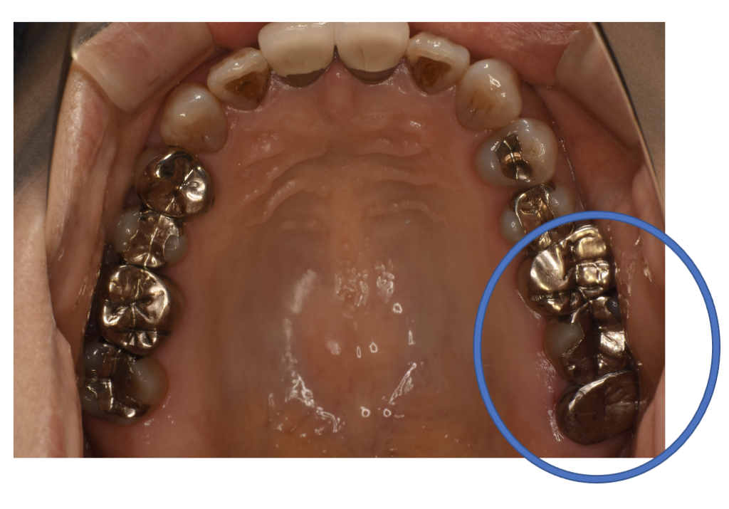 | 備考 | 院長より 銀歯の内部に虫歯が進行してしまっていたケースです。中を開けて見てみると、外から想像するよりもはるかに虫歯が広がってしまっていました。幸運にも神経を保存できたので、生きた臓器としてまだ使うことが可能です。残存歯質がかなり薄く弱くなってしまったので、ジルコニアで被せて守ってあげています。一番奥の親知らずは手入れが難しく、虫歯が進行しすぎていて、相談のうえ抜歯することになりました。 |