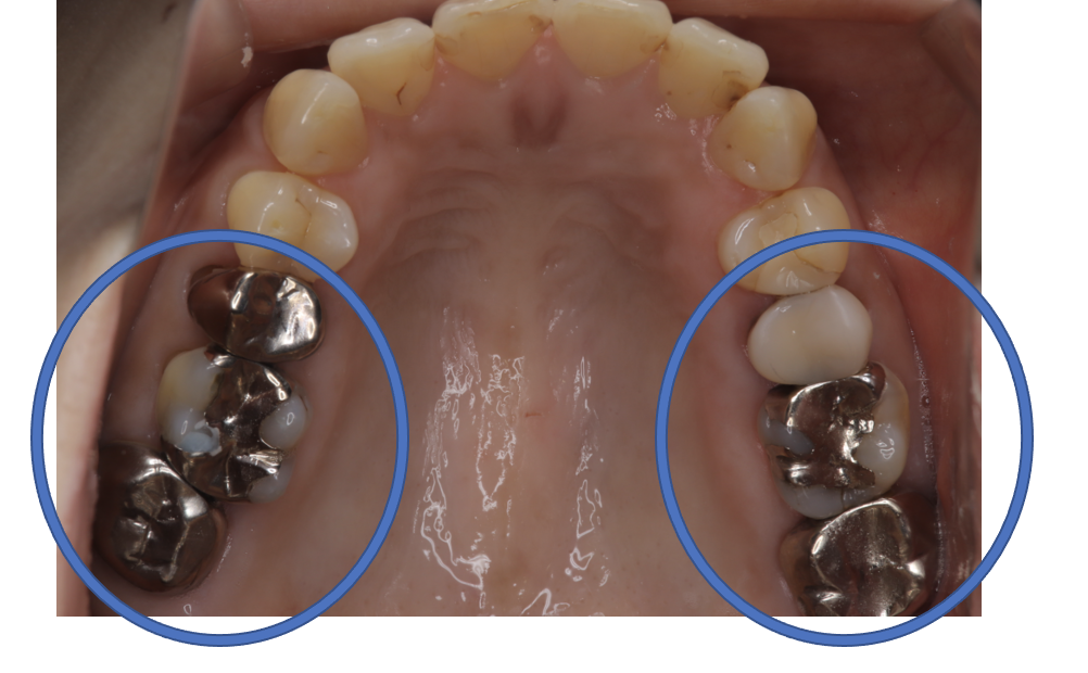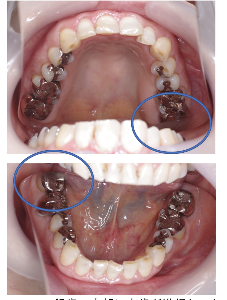 | 備考 | 院長より 銀歯の内部に虫歯が進行してしまっていたケースです。中を開けて見てみると、外から想像するよりもはるかに虫歯が広がってしまっていました。幸運にも神経を保存できたので、生きた臓器としてまだ使うことが可能です。残存歯質がかなり薄く弱くなってしまったので、ジルコニアで被せて守ってあげています。反対側の歯は、残念ながら虫歯の進行が神経まで及んでいて、根の治療が必要になってしまったケースです。 |