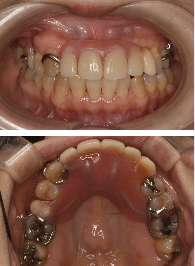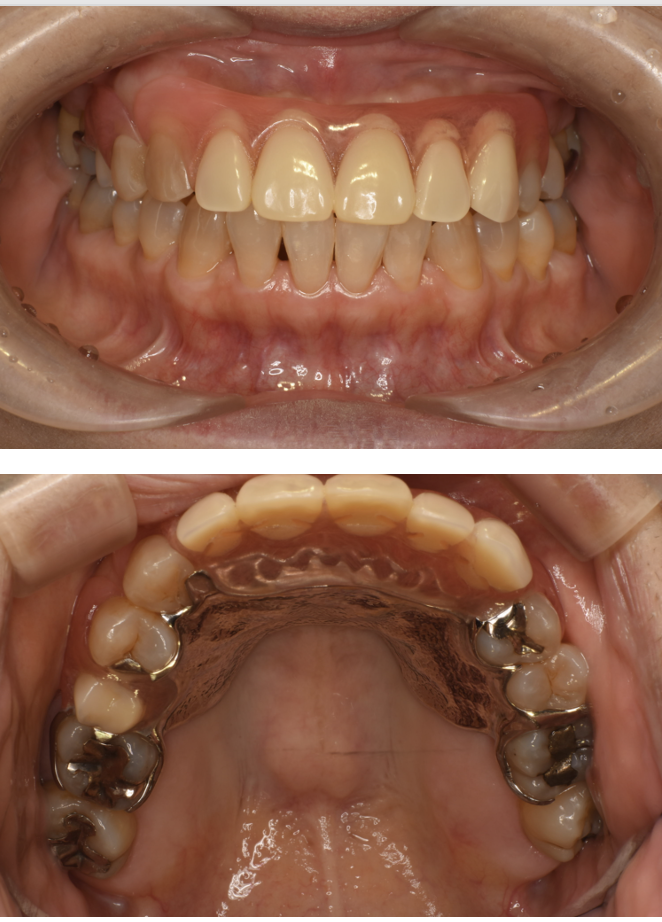| 備考 | 院長より 保険の入れ歯を使用されていたのですが、見た目が気になるのと、違和感が大きいということを悩まれていました。 ノンクラスプ入れ歯を使用することで、見た目が自然になり金属床にすることで違和感が軽減されます |