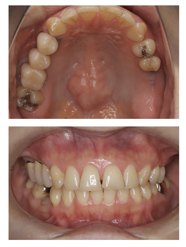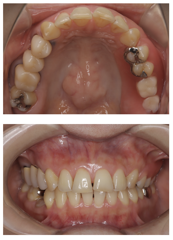 | 備考 | 院長より 保険の入れ歯を使用されていたのですが、見た目が気になるのと、違和感が大きいということを悩まれていました。 ノンクラスプ入れ歯を使用することで、見た目が自然になり、金属床にすることで違和感が軽減されます。 |