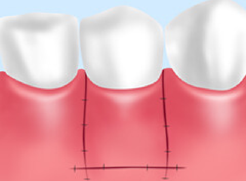 歯肉には、歯を支えている固くて丈夫な「付着歯肉」と、やわらかい「遊離歯肉」があります。歯肉弁根尖側移植術では、歯周病に感染した部位を切除すると付着歯肉が少なくなってしまう場合に行う治療です。